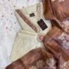 Made from luxurious tissue fabric, the kurti and bottom come in a soft cream hue, beautifully complemented by a rich brown dupatta.